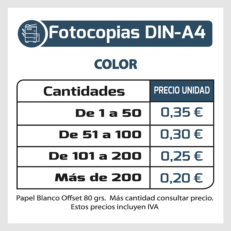 Fotocopias en blanco/negro y color, tamaños Din A-4.